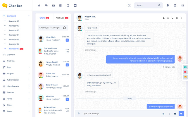 Chat Bot is one of the unique modern admin dashboard template. Premium admin dashboard with high endless possibilities.